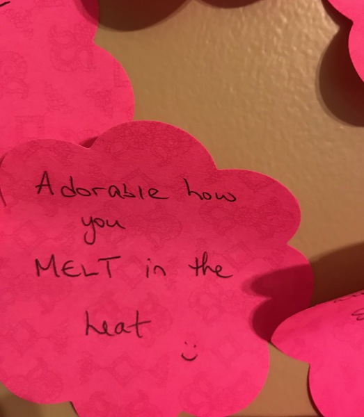 Well, snuggle might be the wrong word. Splayed spread eagle naked with maybe our fingers barely touching as more body heat was not what anyone needed.
